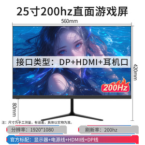 25寸直面黑200hz+无边框 dp+hdmi-官方标配 顺丰包邮