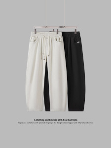 2025秋季新款男士直筒洗水棉纯色简约休闲裤百搭潮流宽松抽绳长裤