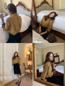 你好卡农 复古格子长袖衬衫女春2025新款宽松显瘦设计感别致衬衣