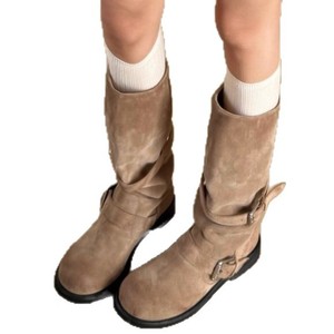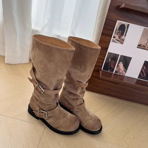 复古擦色做旧高筒靴长筒靴机车靴女中筒骑士靴2025新款秋季长靴子