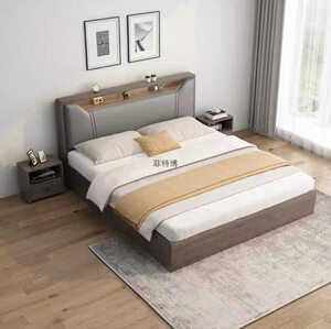 现代简约实木板床家用主卧双人大床1.8米出租屋简易床1.2米落地床