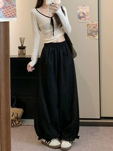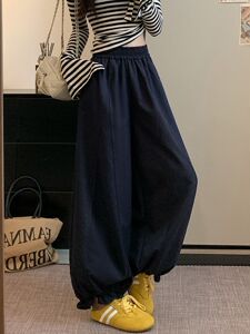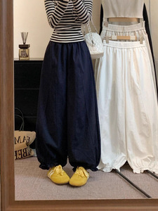 木耳边裤子女秋季2025新款气球裤小个子高腰休闲阔腿裤灯笼花苞裤