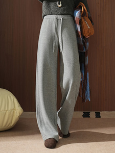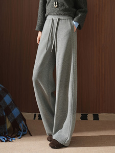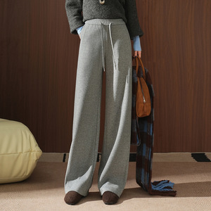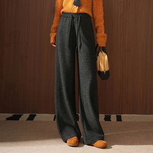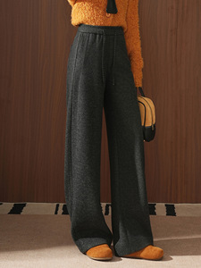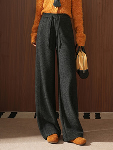 窄版阔腿裤女秋冬2025新款毛呢裤子直筒宽松人字纹加绒羊毛休闲裤