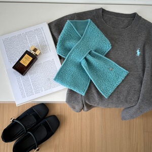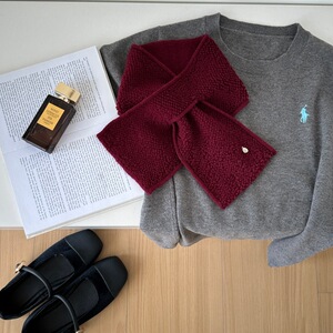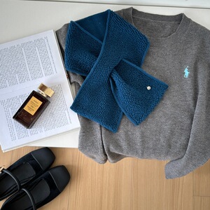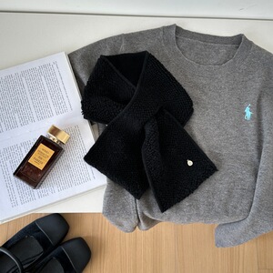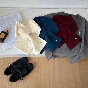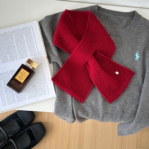 韩系慵懒风复古简约纯色针织交叉小围脖女秋冬气质百搭保暖围巾潮