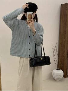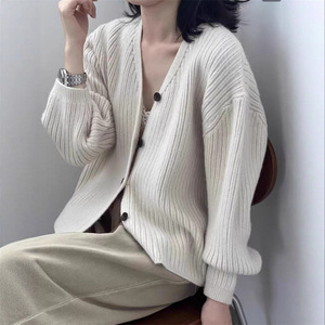 慵懒风休闲韩系坑条单排扣针织开衫女秋冬新款外搭软糯毛衣外套潮