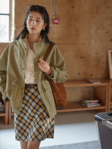 solighter 法式复古立领工装夹克外套女秋季2025新款显瘦宽松上衣