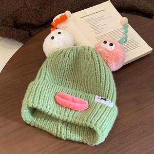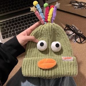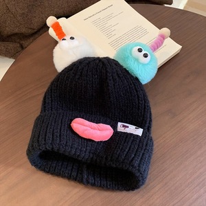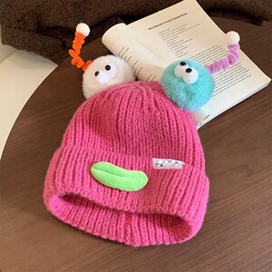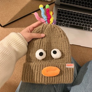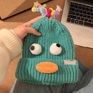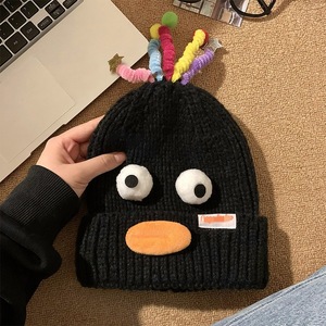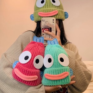 丑鱼帽子女秋冬季毛线帽韩版显脸小保暖针织帽可爱丑萌搞怪护耳帽