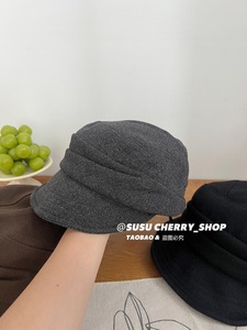 日系山本风|复古褶皱毛呢报童帽女秋冬百搭宽檐显脸小鸭舌帽