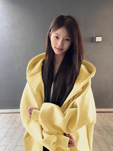 美式奶黄色连帽卫衣外套女早秋2025新款宽松bf慵懒风正肩休闲上衣