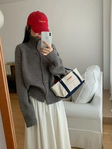 翻领毛衣设计感麻花针织外套女秋冬软糯纯色宽松休闲百搭开衫上衣