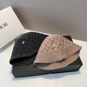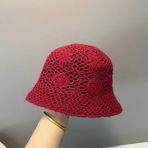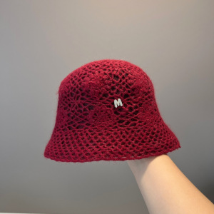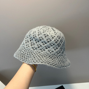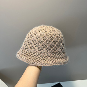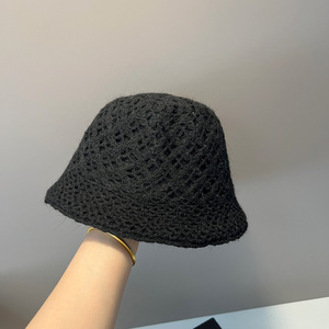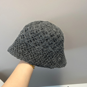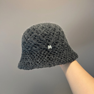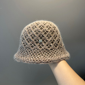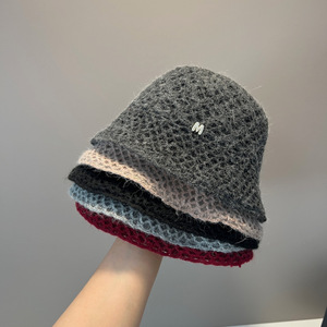 韩版秋冬季针织M标盆帽女镂空双层时尚百搭宽檐显脸小圆顶渔夫帽