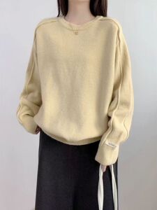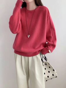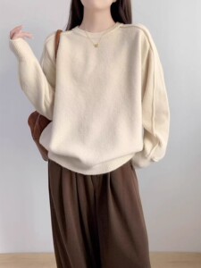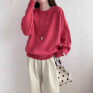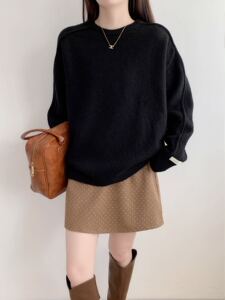韩系慵懒风软糯毛衣女秋冬2025新款宽松显瘦圆领套头针织衫上衣潮