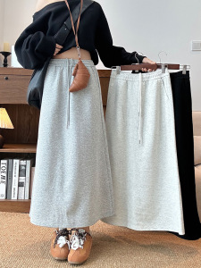 灰色开叉半身裙女2025春秋款中长款直筒修身包臀裙休闲运动卫裙子