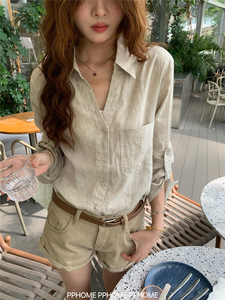 PPHOME自制~高智oni 老钱V领松弛感阔版亚麻长袖衬衫原麻防晒衬衫