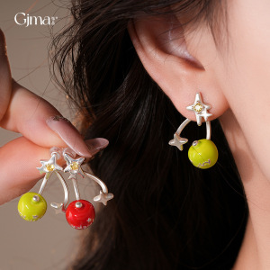 银针清新甜美锆石星星苹果耳环轻奢高级感耳钉时尚精致个性耳饰女