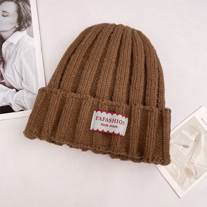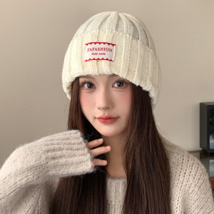 韩系保暖护耳毛线帽子女款秋冬季百搭布标冷帽大头围显脸小针织帽