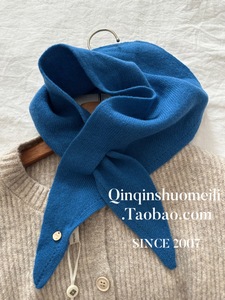 出口韩国100%WOOL软糯羊毛小领巾女百搭护颈围脖围巾披肩外搭ins