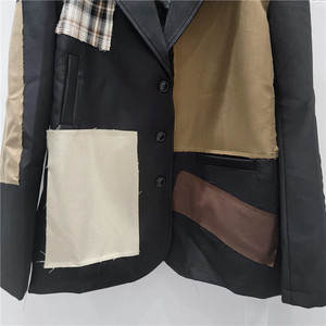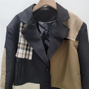 设计感时尚简约拼接撞色ins长袖西装外套女潮欧洲站2025秋季新款