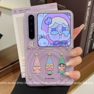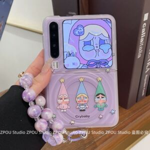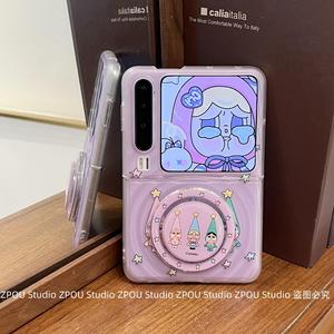 适用华为purax折叠屏pocket2手机壳新款波漾壳泡泡玛特紫色哭娃小米MIXFlip2荣耀MagicVFlip磁吸支架挂绳外壳