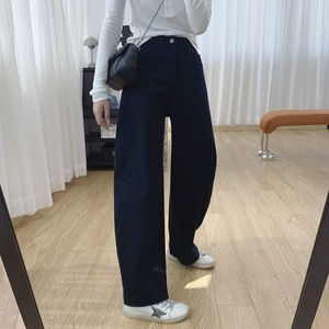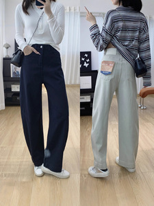 四面弹莱赛尔高腰显瘦弯刀牛仔裤女秋季裤子宽松直筒阔腿裤春秋