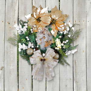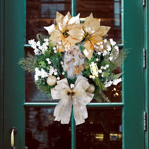跨境圣诞发光金色油灯花环门挂圣诞节橱窗圣诞花花圈装饰品批发