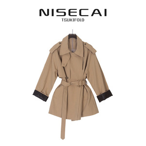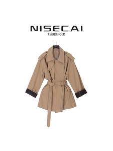 深圳南油25秋复古英伦风撞色翻领系带收腰短款风衣外套(17868115)