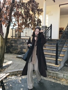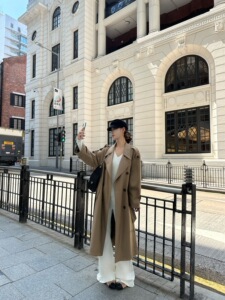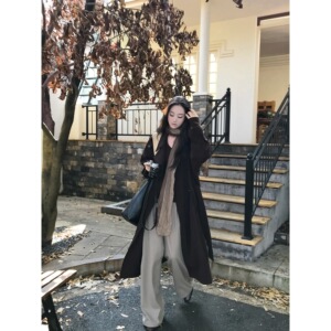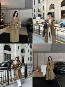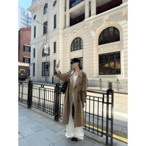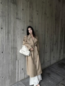 5werkwen 智贤风衣 双排扣大衣女秋冬中长款气质翻领系带春秋外套