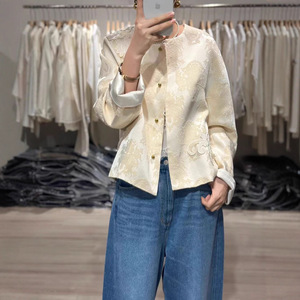 南油代发2025新品时尚新中式提花人丝外套宽松百搭开衫上衣不退换