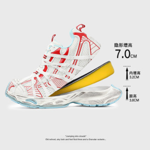 7CM情侣款蜘蛛绑带四季款老爹鞋擦色做旧厚底增高透气运动休闲鞋