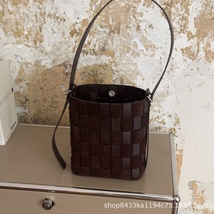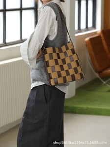 手工编织拼接包包大容量通勤水桶包2025新款高级感百搭单肩斜挎款