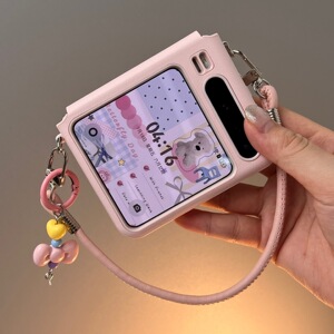 【铰链全包】粉皮壳+粉彩蝴蝶结挂件