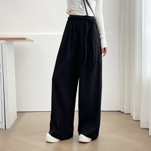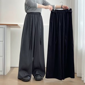 200斤胖妹妹秋季新款简约休闲遮肉腰带西装阔腿裤大码长裤女8312