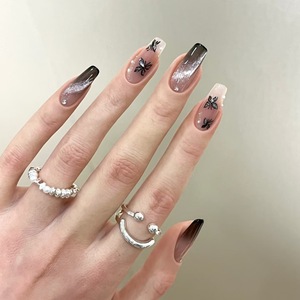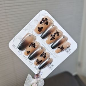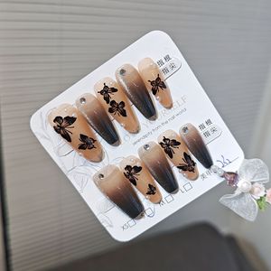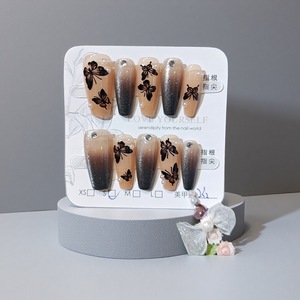 SP-287黑渐蝴蝶10片光疗手工穿戴甲猫眼甜辣气质纯欲美甲片批发
