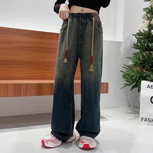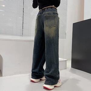 女童牛仔裤2025春秋儿童直筒裤子宽松女大童阔腿中大童牛仔裤