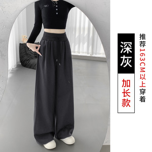 美式运动裤秋季新款高腰宽松休闲拖地长裤吹干慵懒直筒卫裤阔腿裤