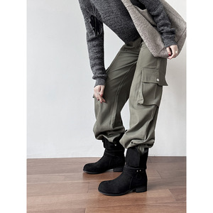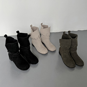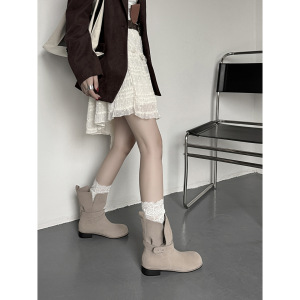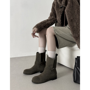 zijin家~简约两穿复古小短靴2025秋冬新款文艺知性风套筒时装靴女
