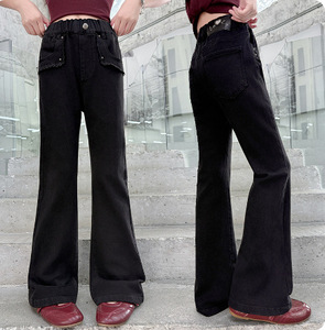 女童喇叭裤春秋2025新款儿童秋装跨境牛仔裤女大童初中生微喇长裤