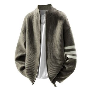 早秋拉链立领开衫毛衣男士慵懒高级感轻熟风外套宽松三条杠针织衫