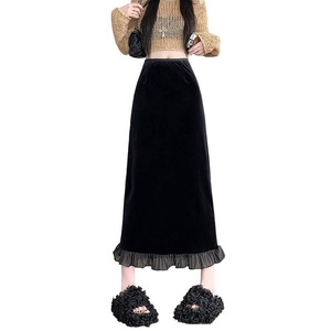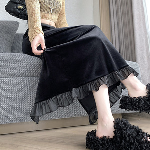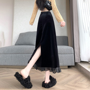 金丝绒软底亲肤加加厚面料半身包臀一步裙松紧腰秋冬中长裙