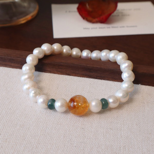 8MM天然淡水珍珠黄塔晶手串