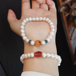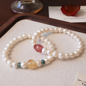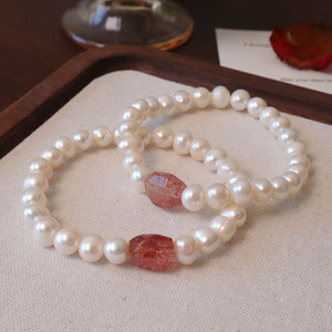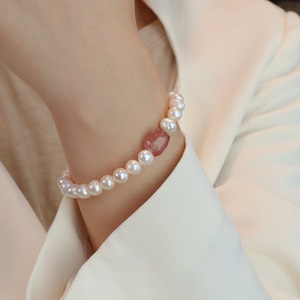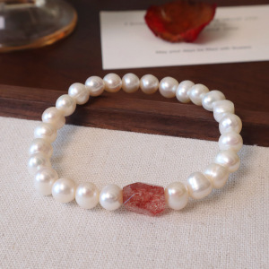 8MM天然淡水珍珠异形草莓晶手串