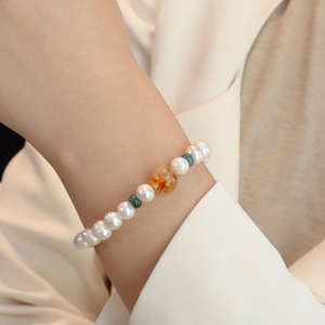 8MM轻奢天然淡水珍珠手链高级感黄塔晶水晶手串简约温柔百塔串珠