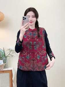 2025秋季棉麻提花底重工刺绣坎肩国风立领盘扣宽松女士马甲