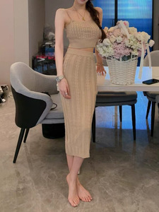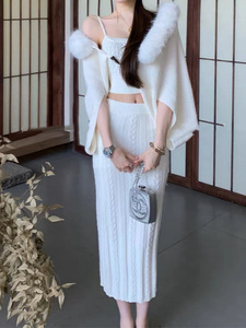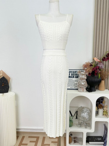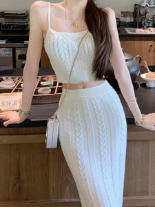【昭和系】立体浮雕编织麻花吊带上衣/包臀半裙针织套装