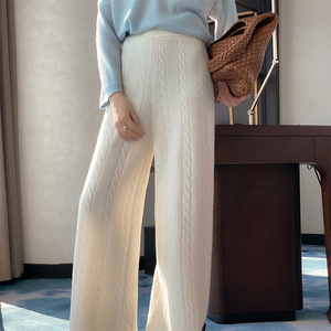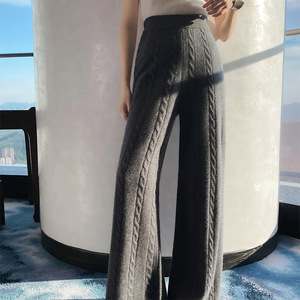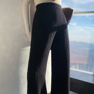 复古加厚100羊毛麻花阔腿裤女宽松显瘦直通腿裤休闲百搭羊绒长裤