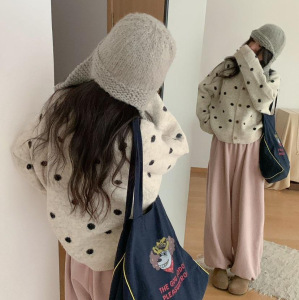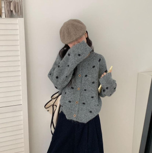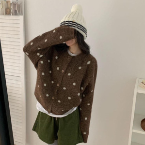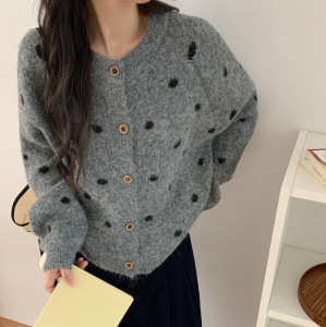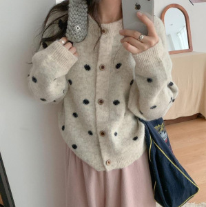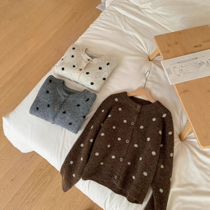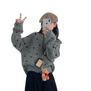 波点针织开衫 2025秋季新款 慵懒风时尚圆领毛衣外套女上衣潮3217