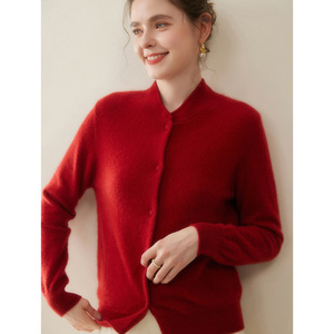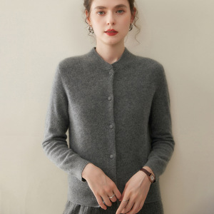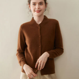 山羊绒开衫新款秋冬女立领外套时尚修身包扣显瘦针织中式毛衣气质