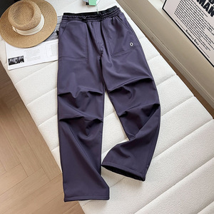 户外通勤女款薄暖绒松紧防风防水宽腿直筒软壳冲锋裤抓绒降落伞裤