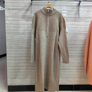 跨境专供秋冬新款拉链毛衣裙女中长款宽松欧码加厚针织连衣裙批发