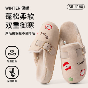 勃肯棉拖鞋女2025新款秋冬季保暖毛毛绒软底防滑防水室内棉鞋女款